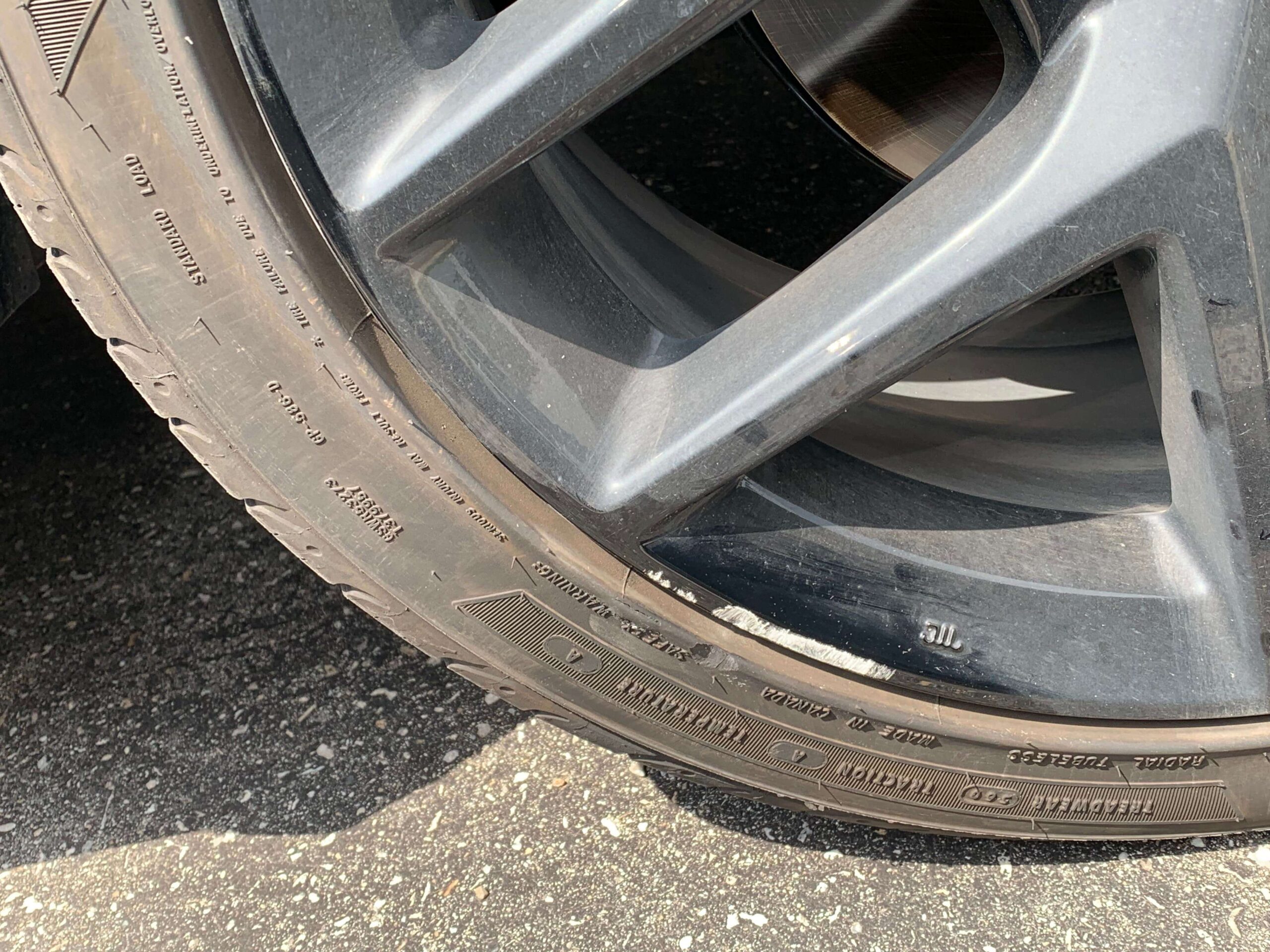 Curb rash usually appears as scratches or gouges along the outer edge of the rim after hitting a curb when parking. Although it may look like a minor mark, exposed metal can eventually lead to corrosion.